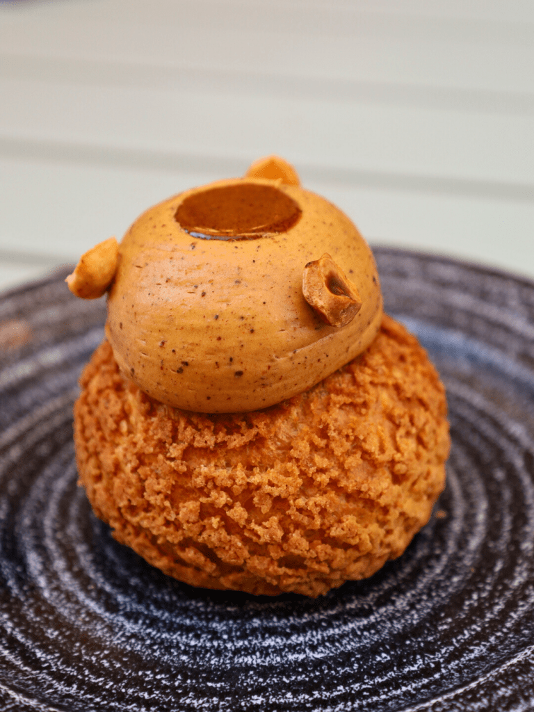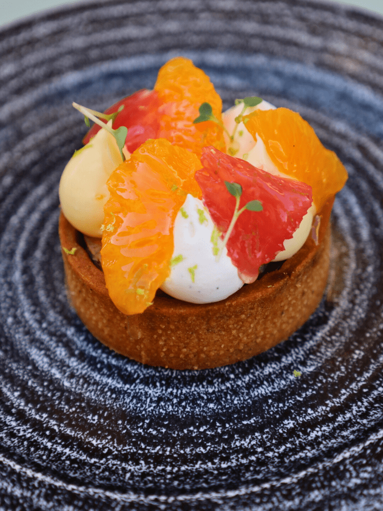 - Brioche imbibée dans un sirop aux agrumes et poivre de timut,