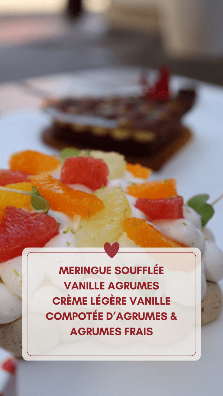Pour ceux qui préfèrent la légèreté et la fraîcheur, notre pavlova aux agrumes est une ode à la délicatesse.